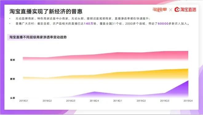 2019年末,淘寶直播在阿里巴巴電商平臺上的整體滲透率夫接近去年同期的兩倍。各行各業(yè)都在將直播作為商業(yè)的一個核心動能,這一新經濟業(yè)態(tài)已經進入成熟期。